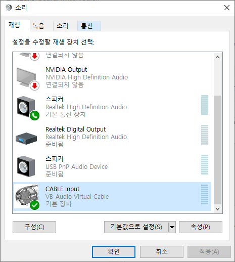 그럼 재생에 CABLE Input이 추가된 걸 볼 수 있습니다.