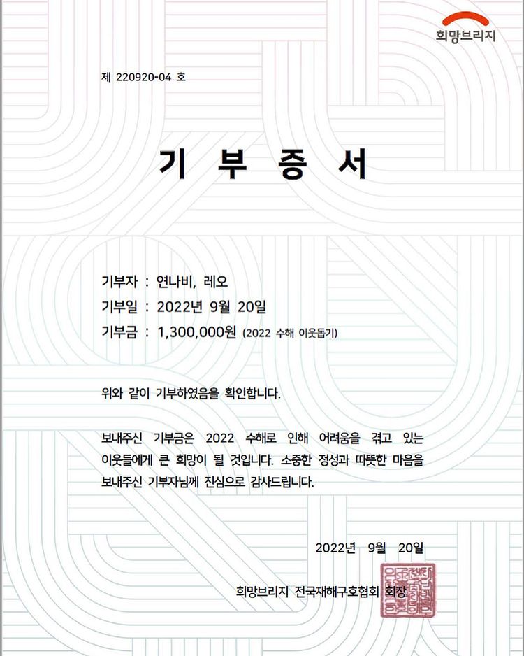 기부자로 연나비님은 물론 경매 낙찰자 분의 닉네임도 들어가 있어 인플루언서에게도 팬에게도 더욱 뜻깊은 활동이 아닐까 생각됩니다.